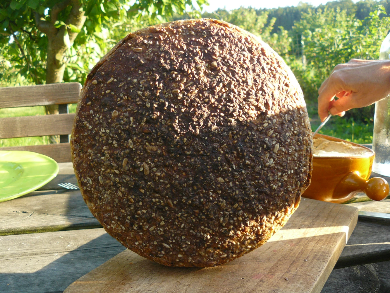 Lad stå natten over. Næste morgen tilsættes: 300g solsikkekerner 300g hørfrø 1 dåse øl Rør godt rundt og put i to forme. Lad hæve i 3-4 timer. Sæt i en kold ovn og bag ved 200 grader i 1 ¼ time.